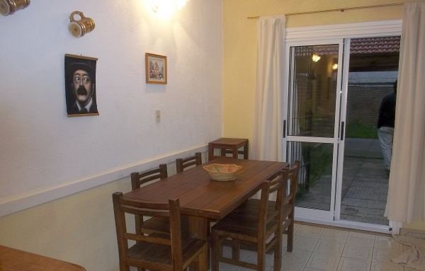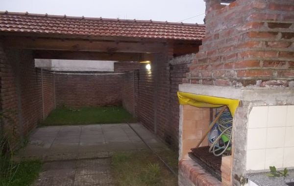 Excelente patio con parrilla y techo central tipo quincho con espacio verde.